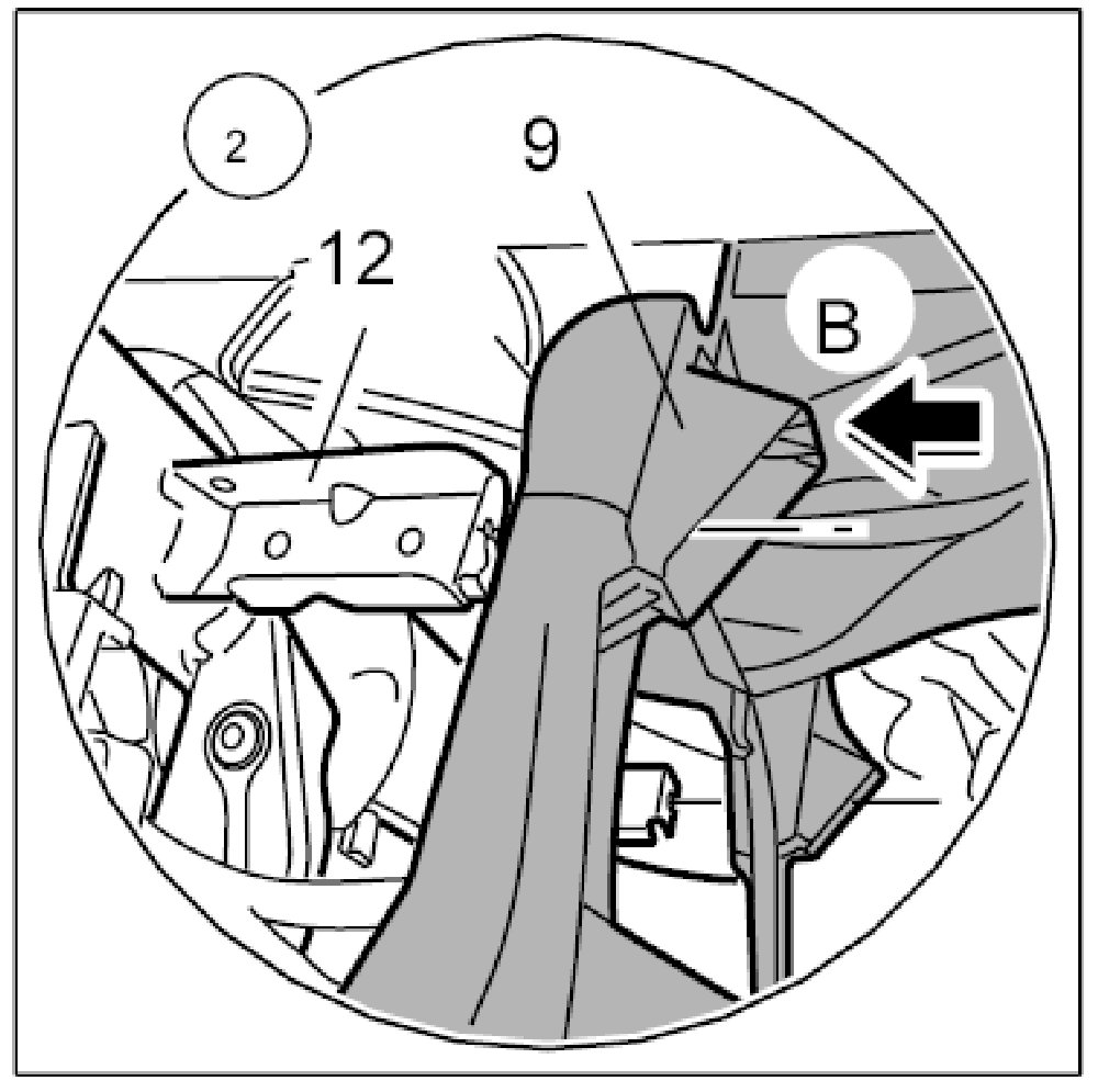 14. Lift the sheetmetal reinforcement on the front passenger's side -3- and pull it out to the rear -arrow B-.
