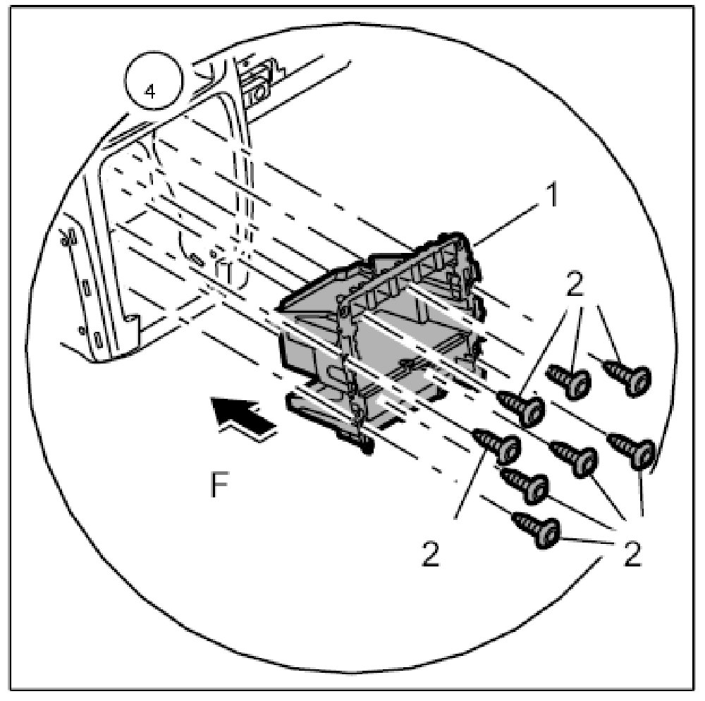 13. Remove the sheetmetal reinforcement on the passenger's side. To do this, unscrew the fastening screws -4-.