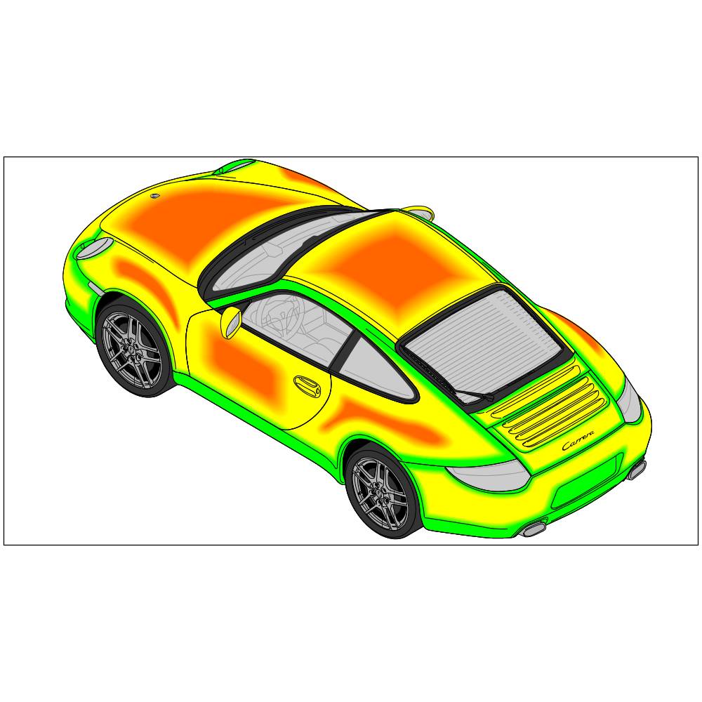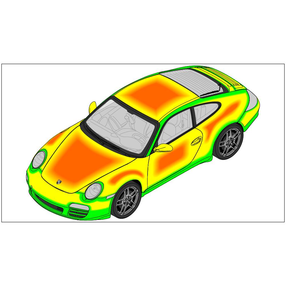 - This painting method can be used to its full extent in areas with low light reflection (e.g. bumpers, door sills, edges of parts). -green area-