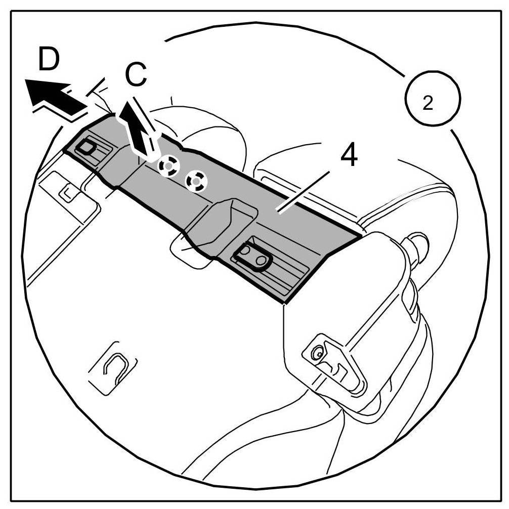 3. Unclip cover for rear backrest -4- at fastening clips -Arrow C- and pull out to the left -Arrow D-.
