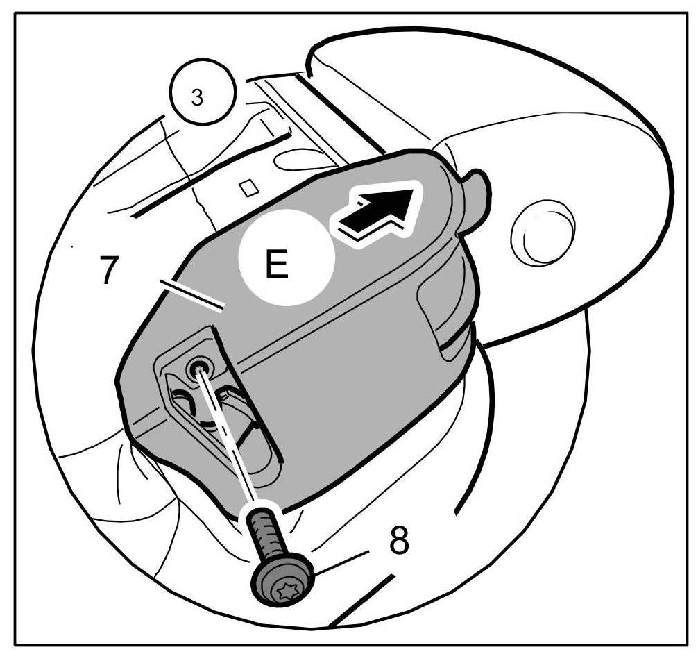 8. Pull out cover of lock for rear backrest -7- -Arrow E-.