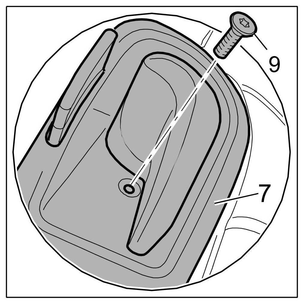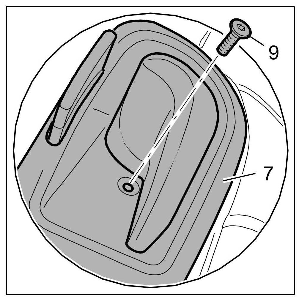5. Screw in fastening screws -8- -9- and tighten to the specified torque. => Tightening torque: 4.5 Nm (3.5 ftlb.)+/-0.5 Nm (+/-0.5 ftlb.) => Tightening torque: 2.5 Nm (2.0 ftlb.)