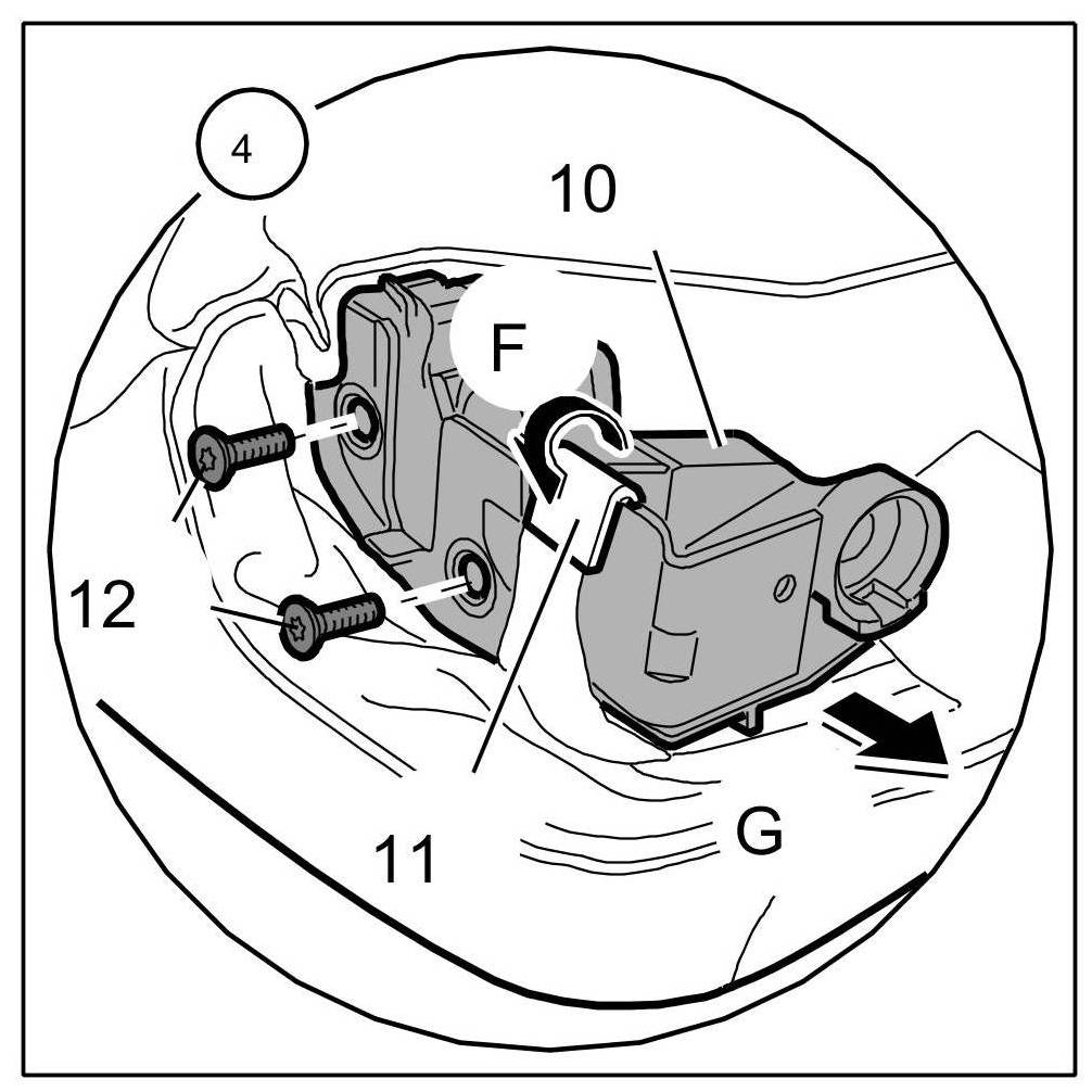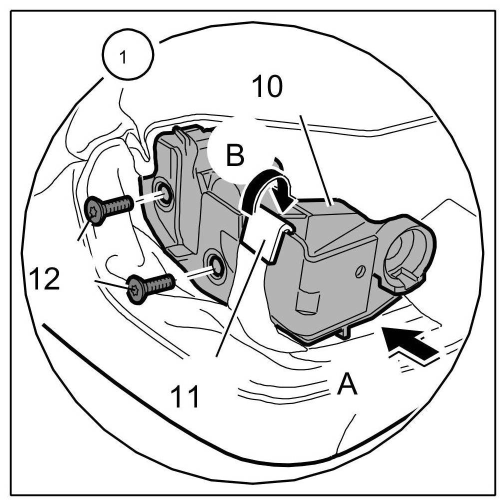 2. Screw in and tighten fastening screws -12-. => Tightening torque: 20 Nm (15 ftlb.)+/-2 Nm (+/-1.5 ftlb.)