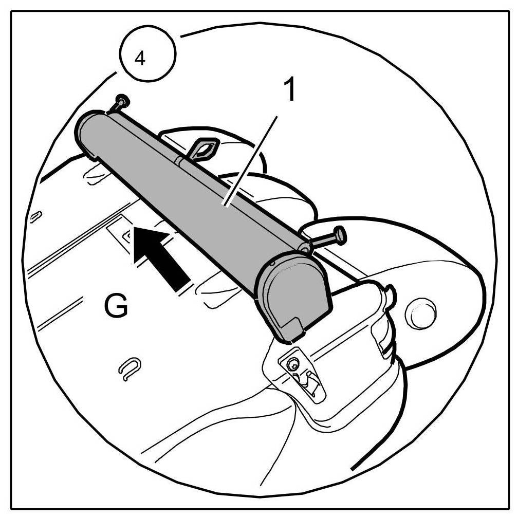 7. Push on retaining clips -6- - the springs -arrows- must be pointing left, to the centre of the vehicle.