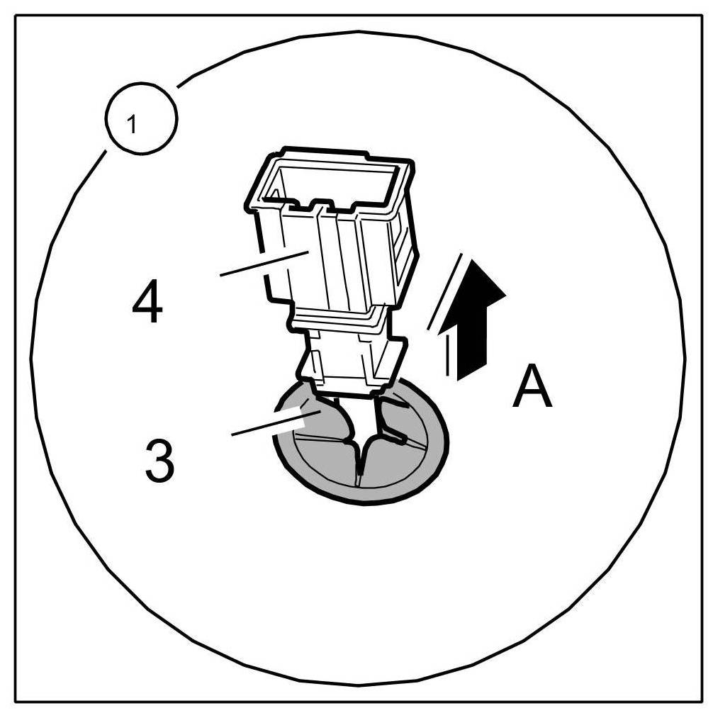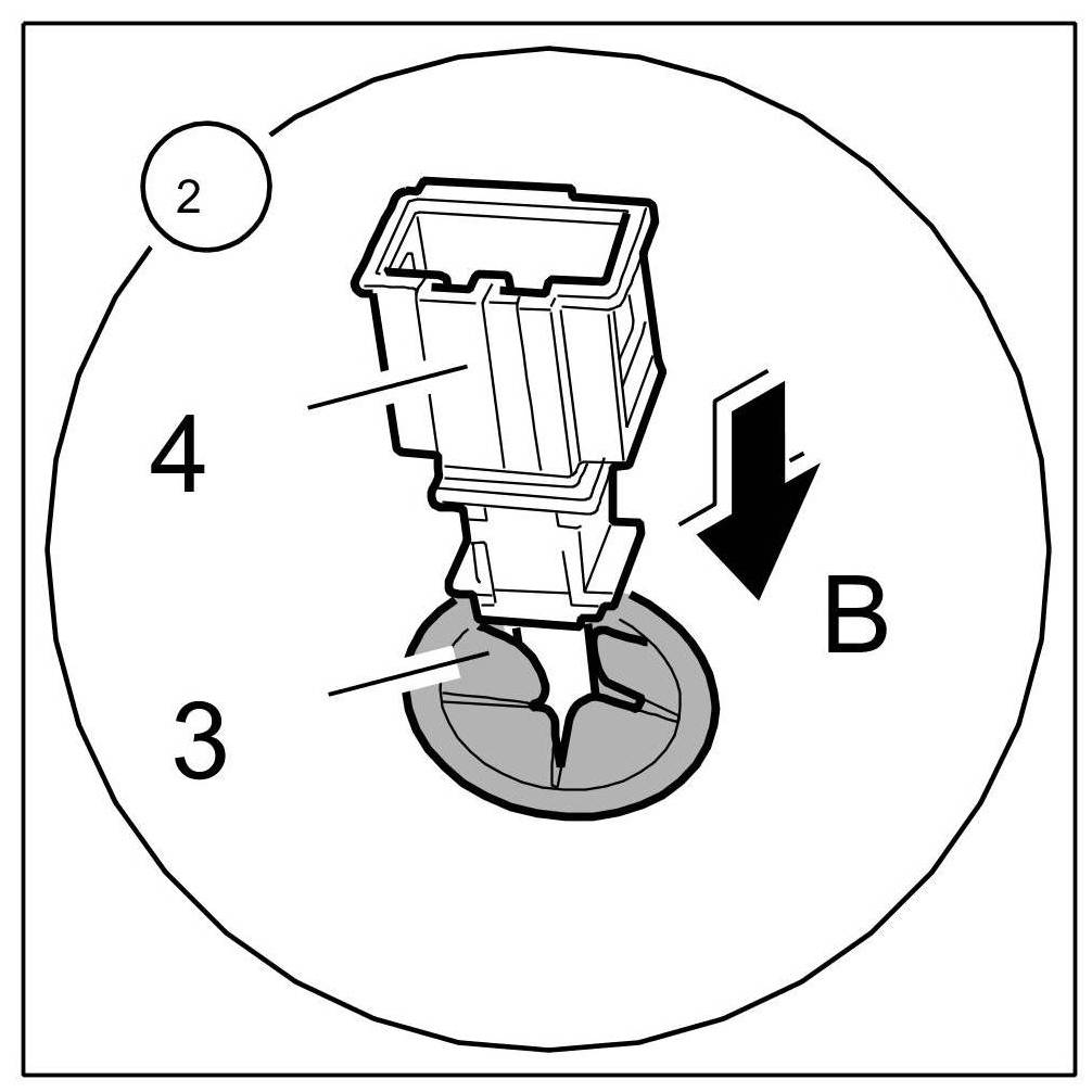 2. Fasten wire harness for heated seats (only for vehicles with heated seats): Insert connector -4- into the seat frame and fit the grommet -3- -Arrow A-.