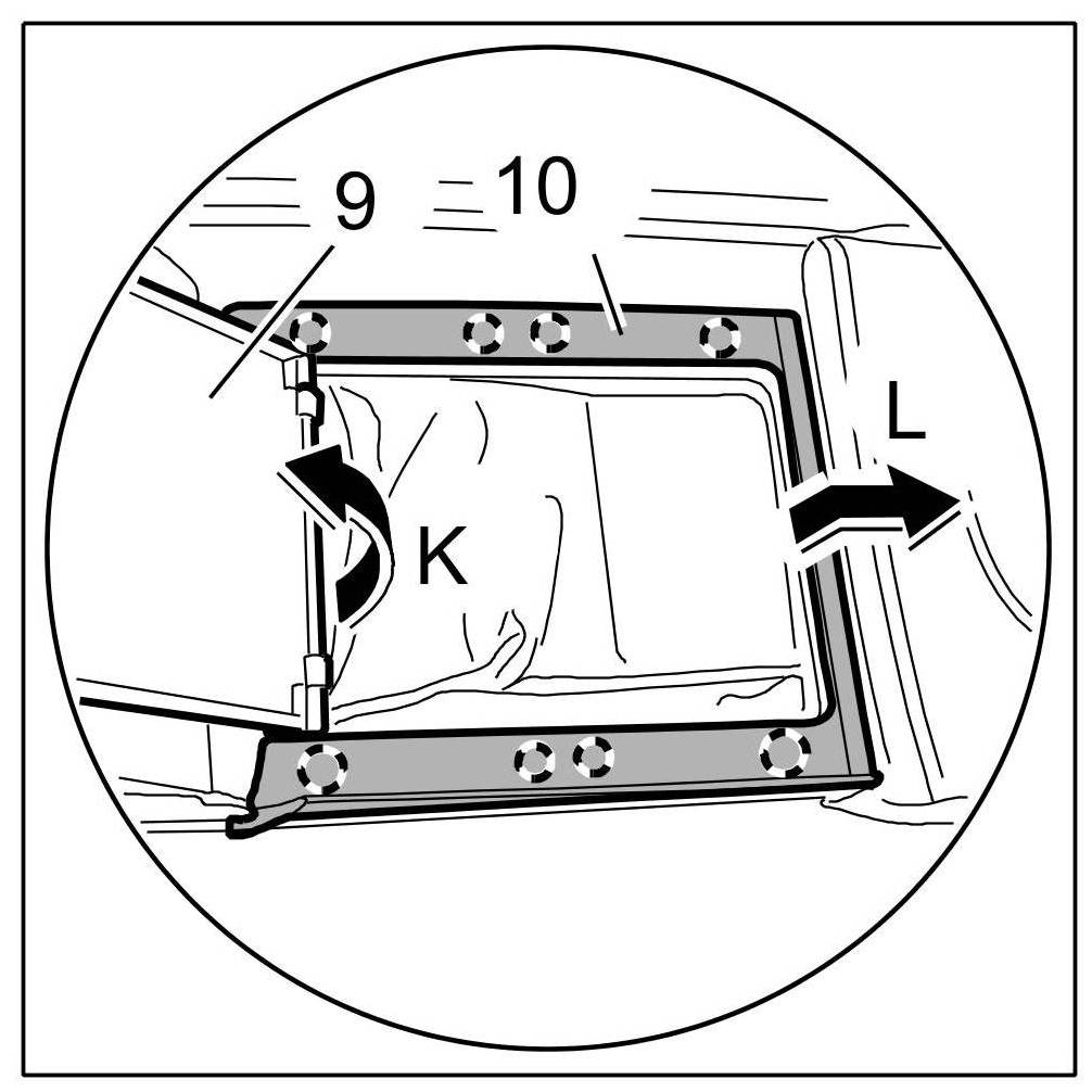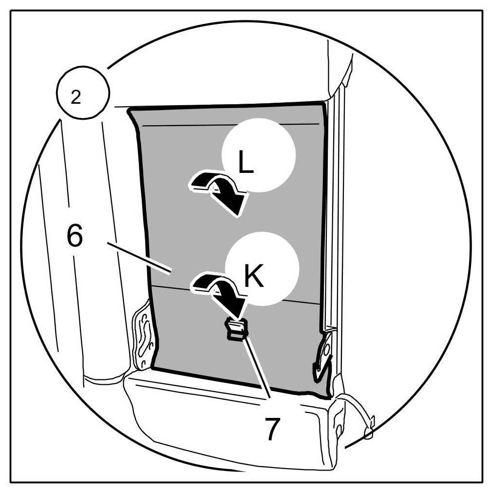 Insert cover for backrest -6- over the holding strap -7- -Arrow K- and fold over -Arrow L-.
