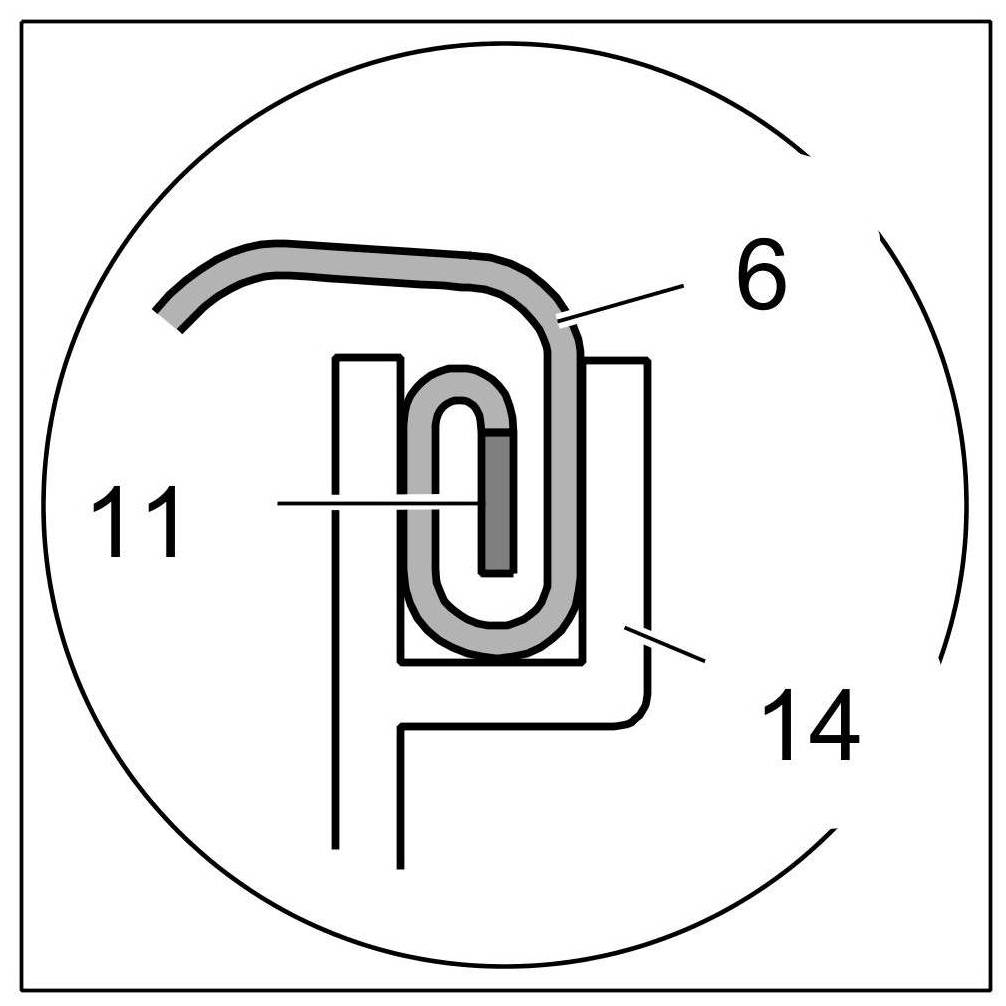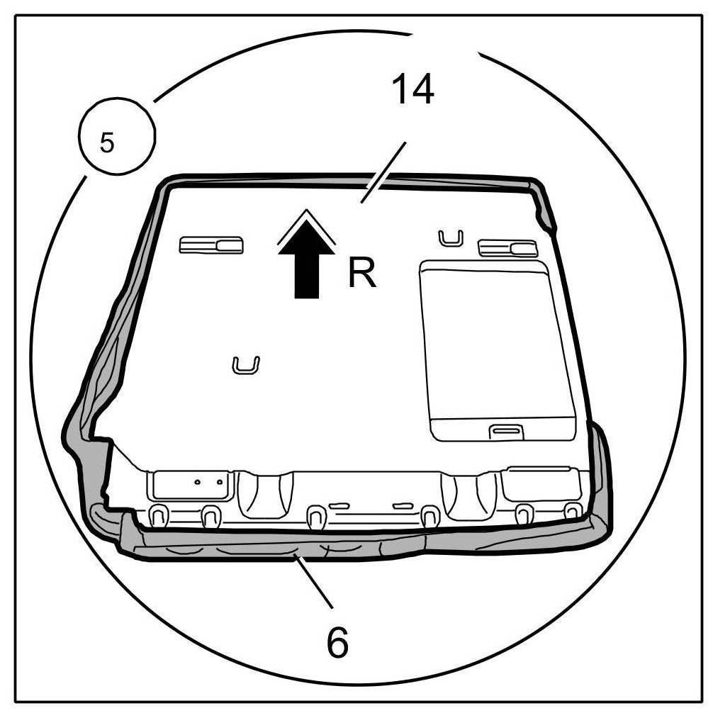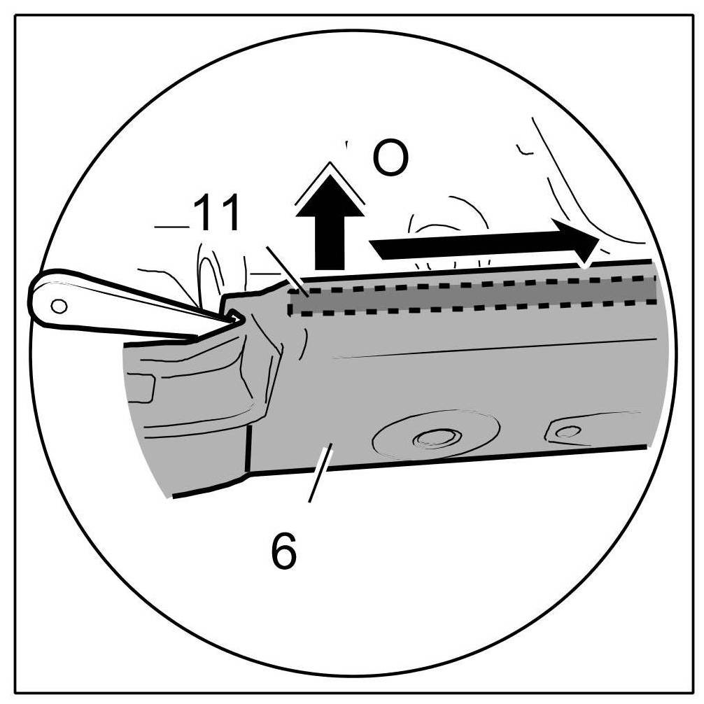 14. Lever out piping -11- of cover for seat -6- with a plastic wedge at the upper right corner -Arrow O-.