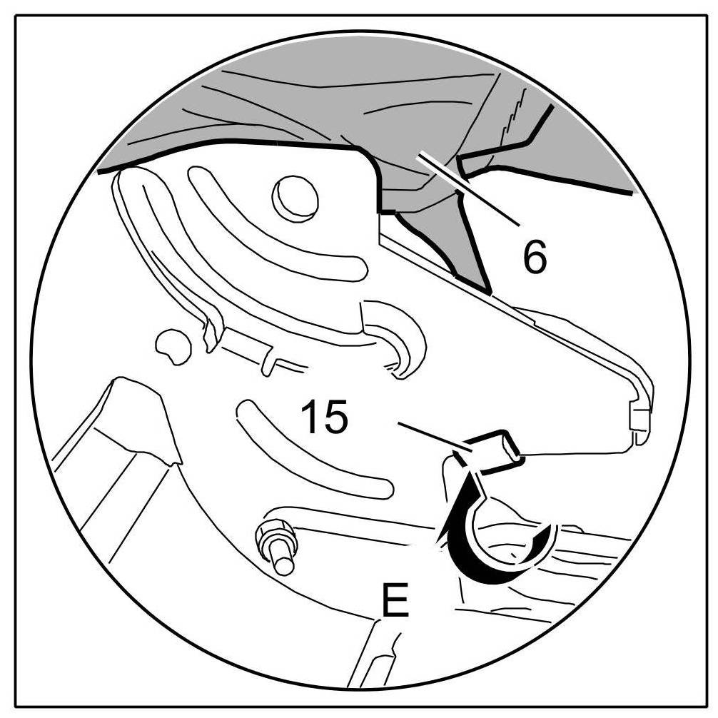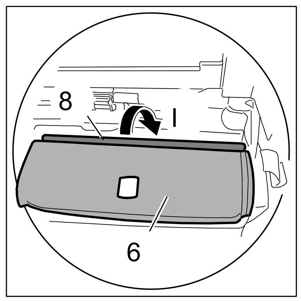 7. Install cover of load-though provision: Insert cover of load-through provision -10- -Arrow G- and clip in -circle marks-.
