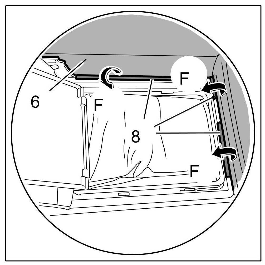 6. Engage plastic strips -8- of covering for backrest -6- -Arrows F-.