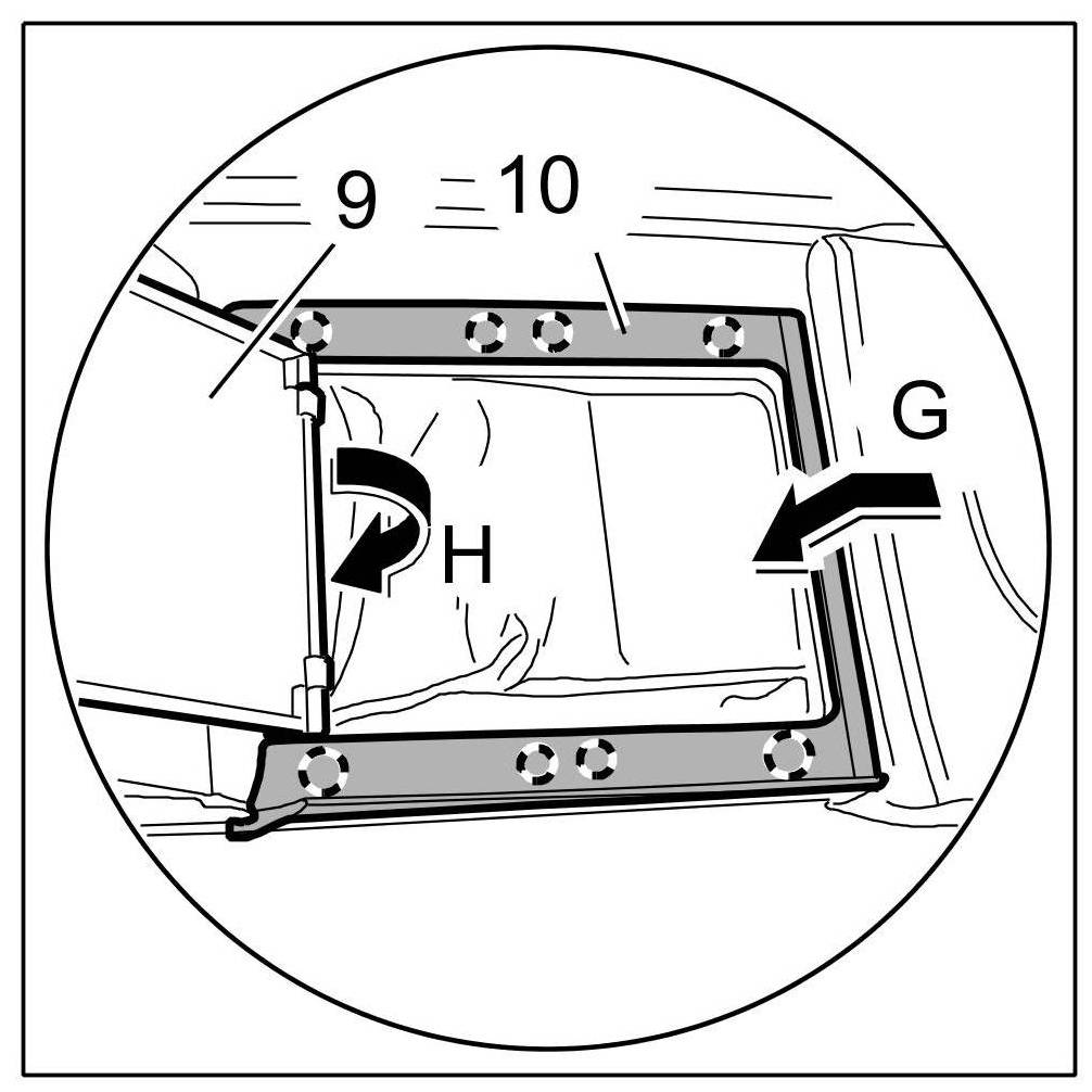 8. Close front lid -9- ( -Arrow H- ).