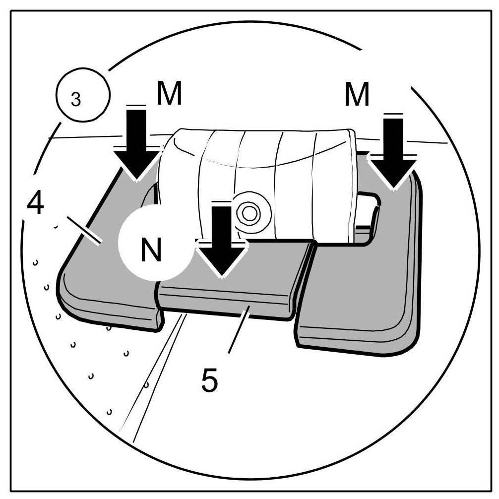 10. Insert seat belt cover -4- and clip in -Arrows M-.