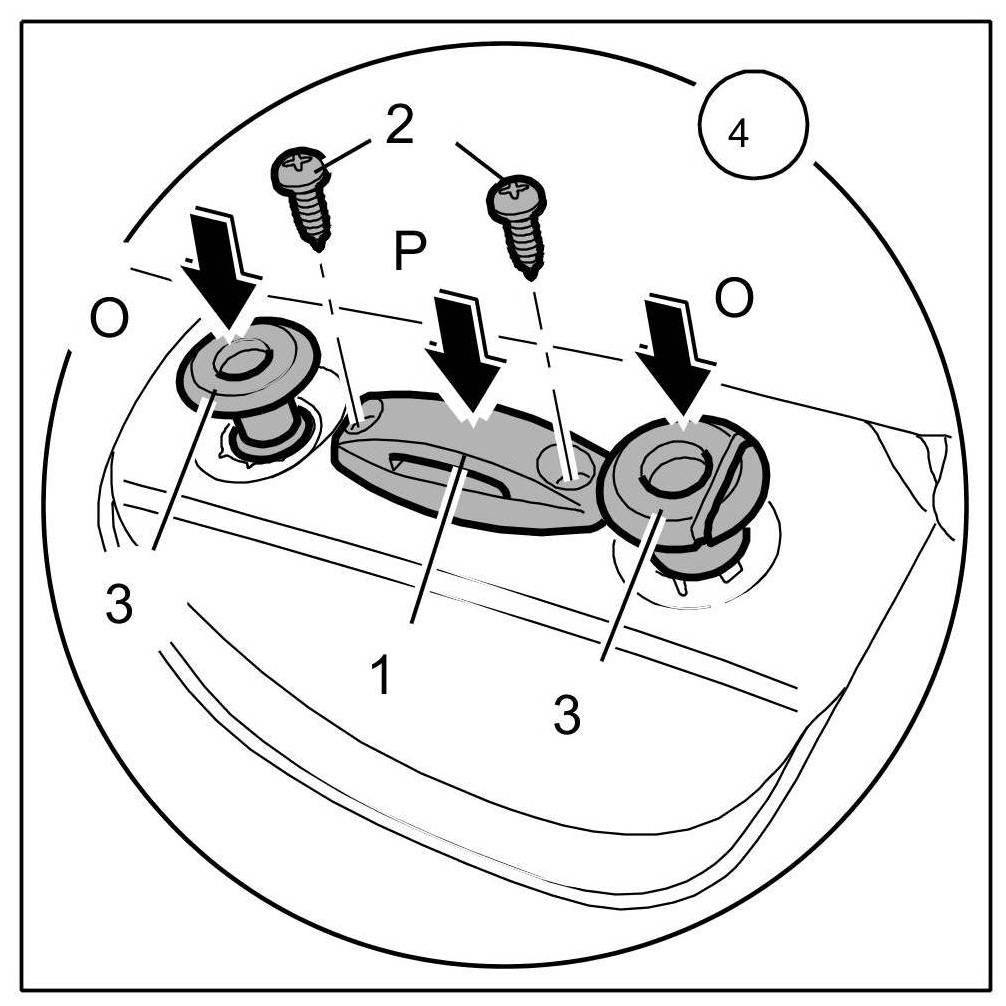 1. Remove support: Undo fastening screws -2-.