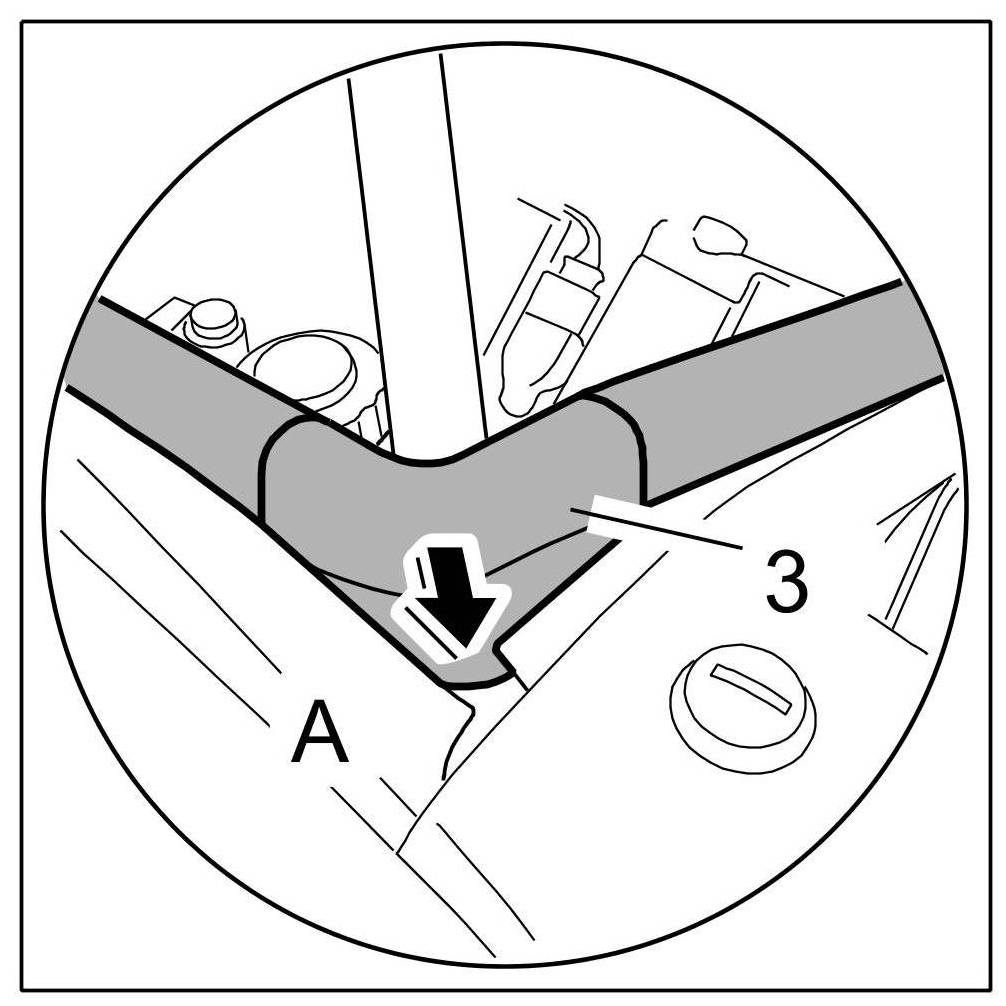 2.1. Pre-position the seal according to the corner pieces -3- and press onto the sheetmetal flanges -A- in this area.