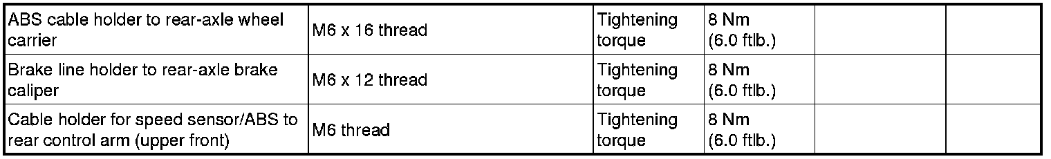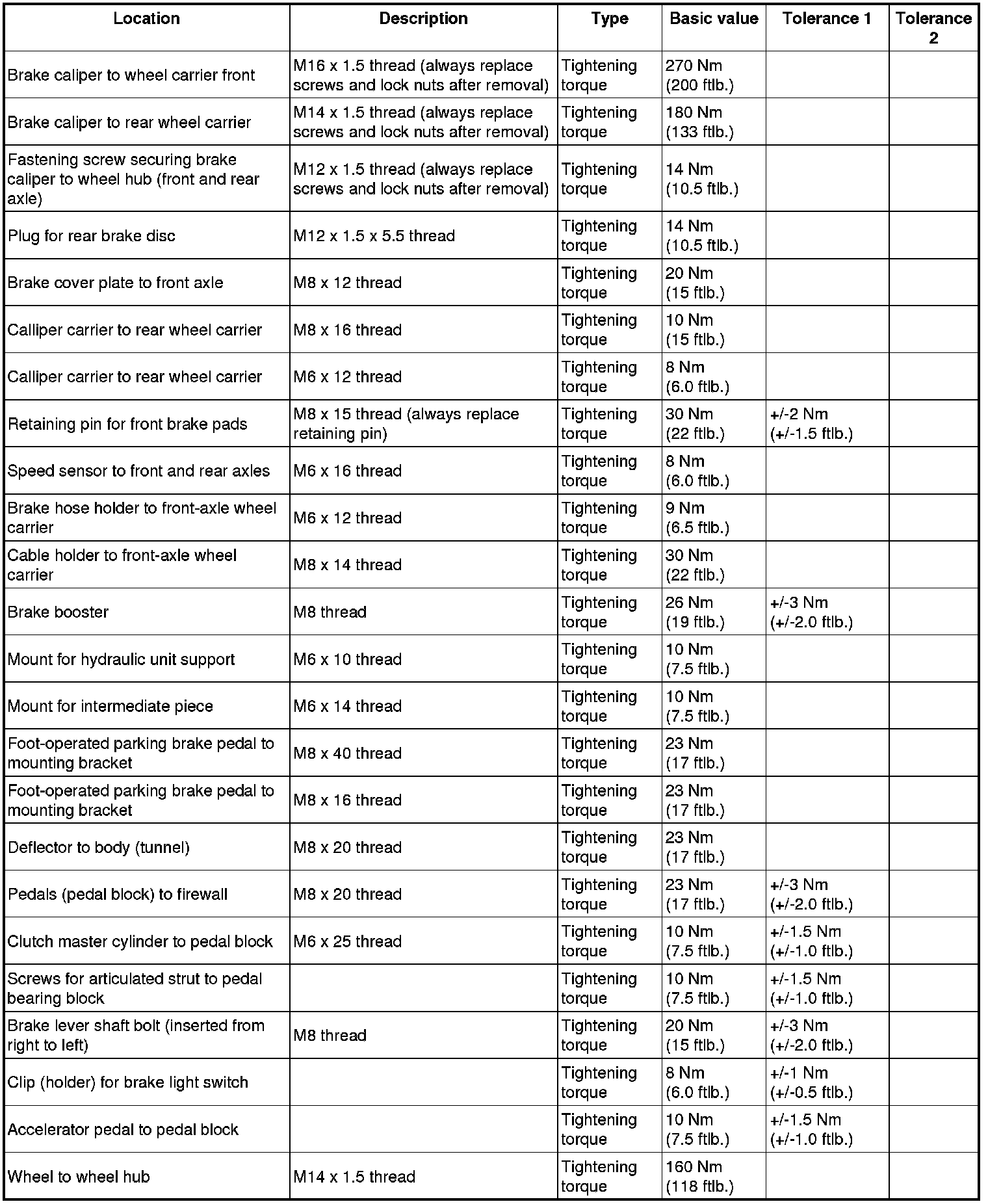 Tightening torques for brake mechanics