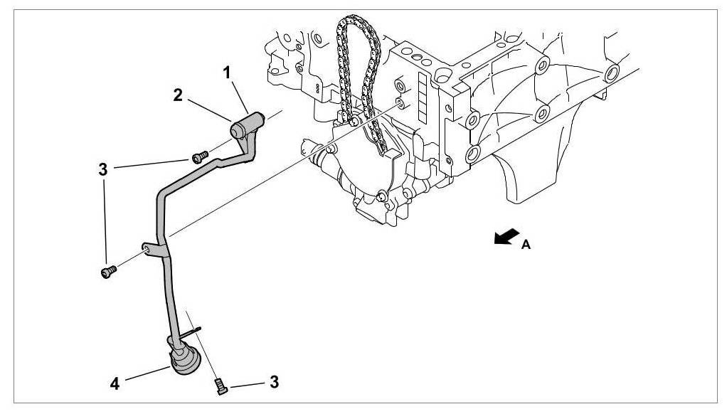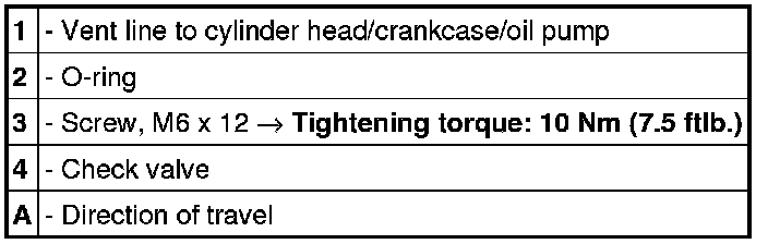 1. Remove the vent line between the oil mist separator and cylinder head. To do this, unscrew the fastening screws -3-.