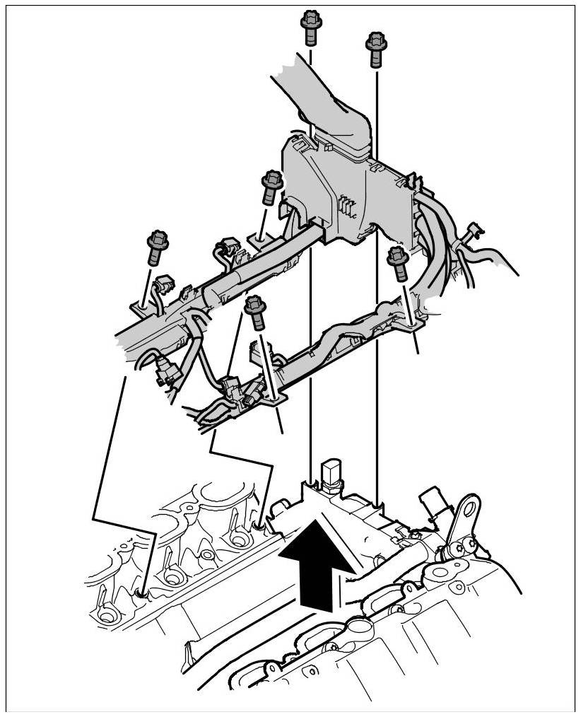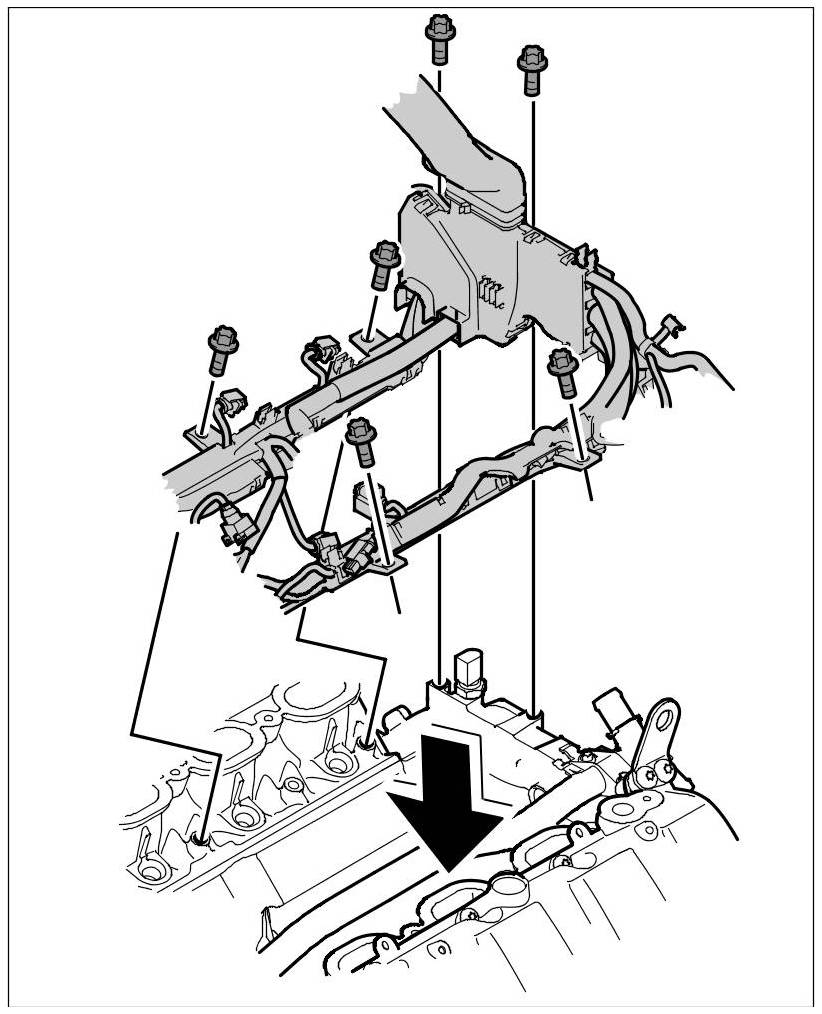 6. Secure wire harness to the engine.