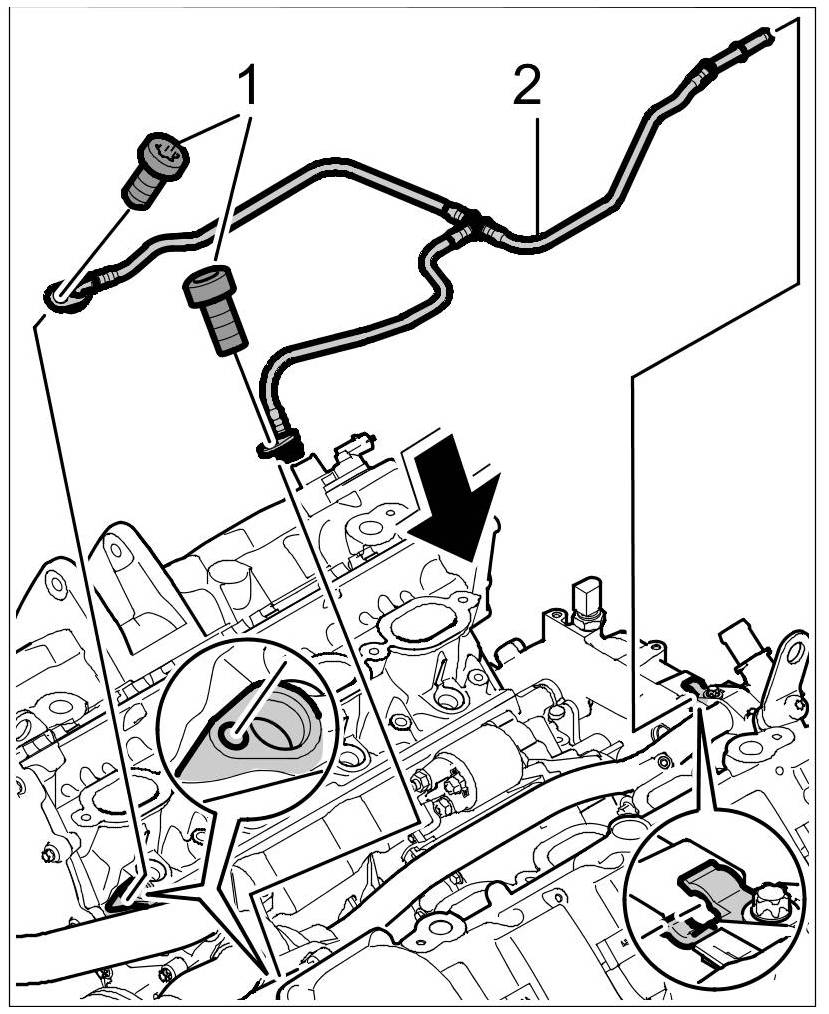 - If more extensive work is planned, e.g. if the entire cylinder head is to be replaced, the exhaust manifolds, fuel injectors, high-pressure pump or vacuum pump must also be removed.
