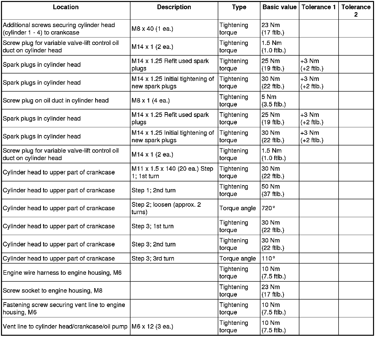 - Tightening sequences and tightening torques must be observed.
