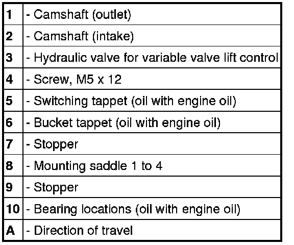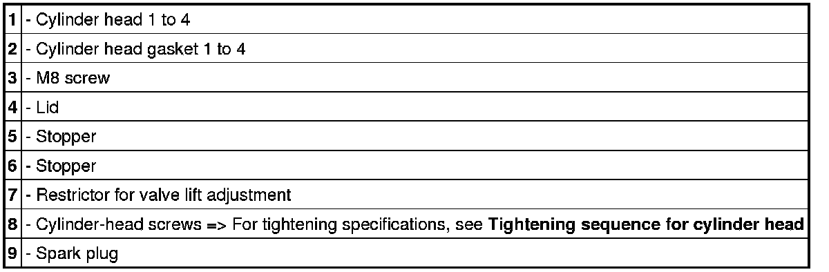 8. Remove cylinder head screws in the opposite order to the tightening sequence shown => Tightening sequence for cylinder head. Remove cylinder head. If necessary, remove the valve lifters now and lay them aside in the correct order.