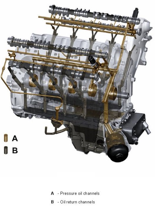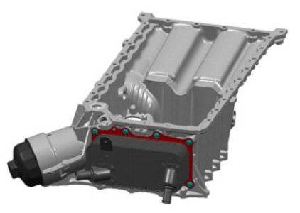 To ensure a lightweight design, the oil plane, the oil return collection tank and the suction pipe are all together in a plastic housing fitted in the oil pan.