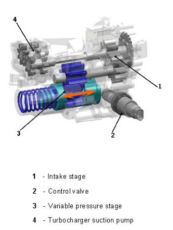 The Cayenne Turbo has an additional pressure oil line for turbocharger lubrication. A turbocharger suction pump ( -4- ) is integrated in the main oil pump for suctioning off the lubricating oil.