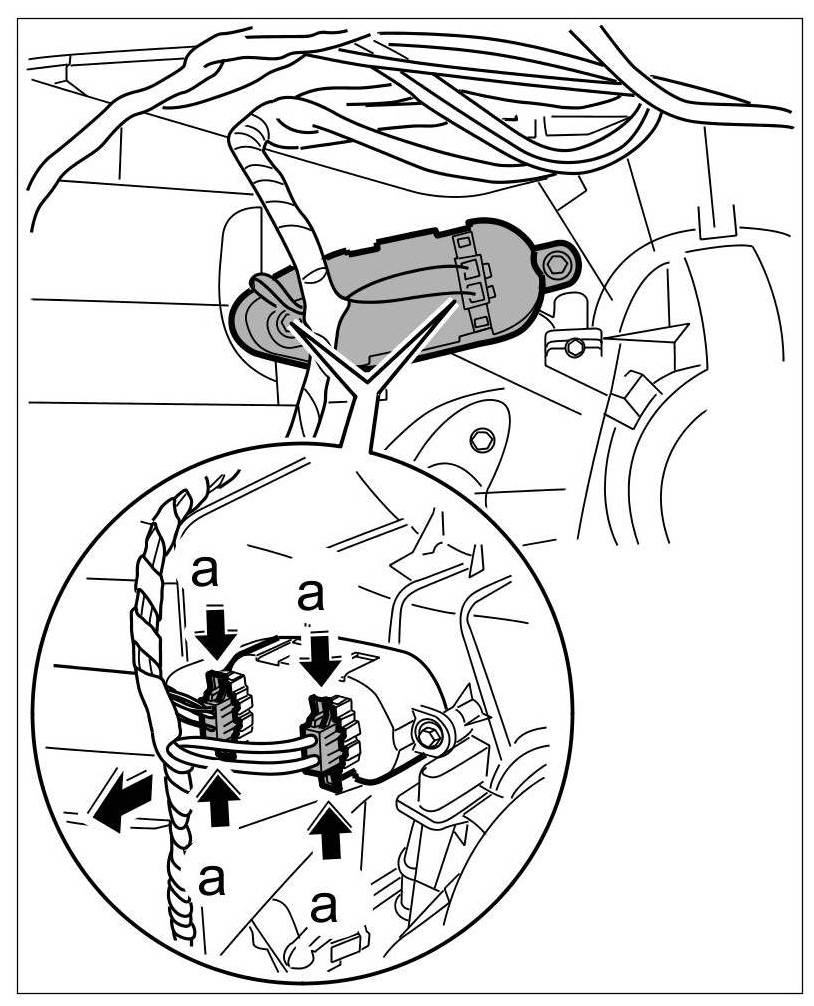 1. Press the latch of both connectors -Arrows a- and remove the connectors from fan control.