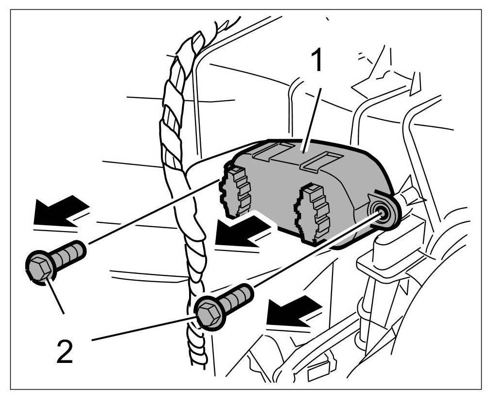 2. Unscrew the two fastening screws -2- and remove the fan control -1-.