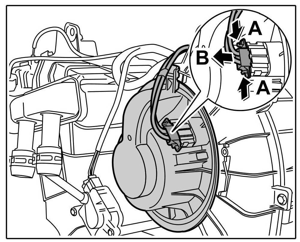 1. Release the plug -arrows A- and pull off -arrow B-.