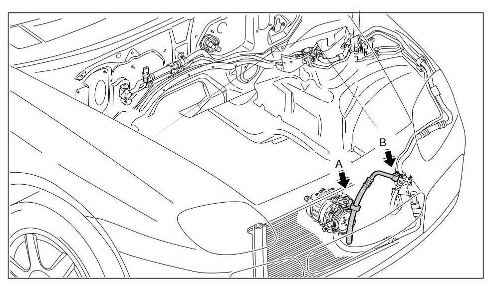 Removing the compressor-condenser line (A - B)