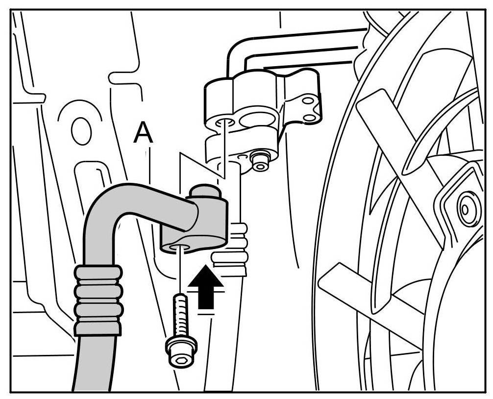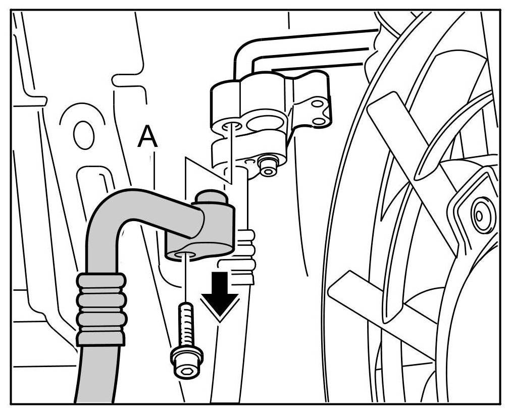 5. Pull out the refrigerant line from the compressor and remove downwards from the engine area.