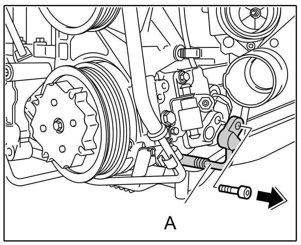 4. Unscrew fastening screw of the refrigerant line -A- on the compressor.