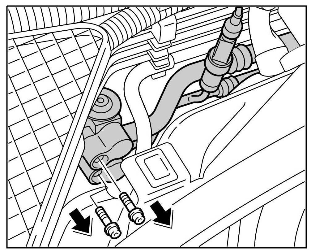 4. Unscrew the fastening screw on the air conditioning compressor.