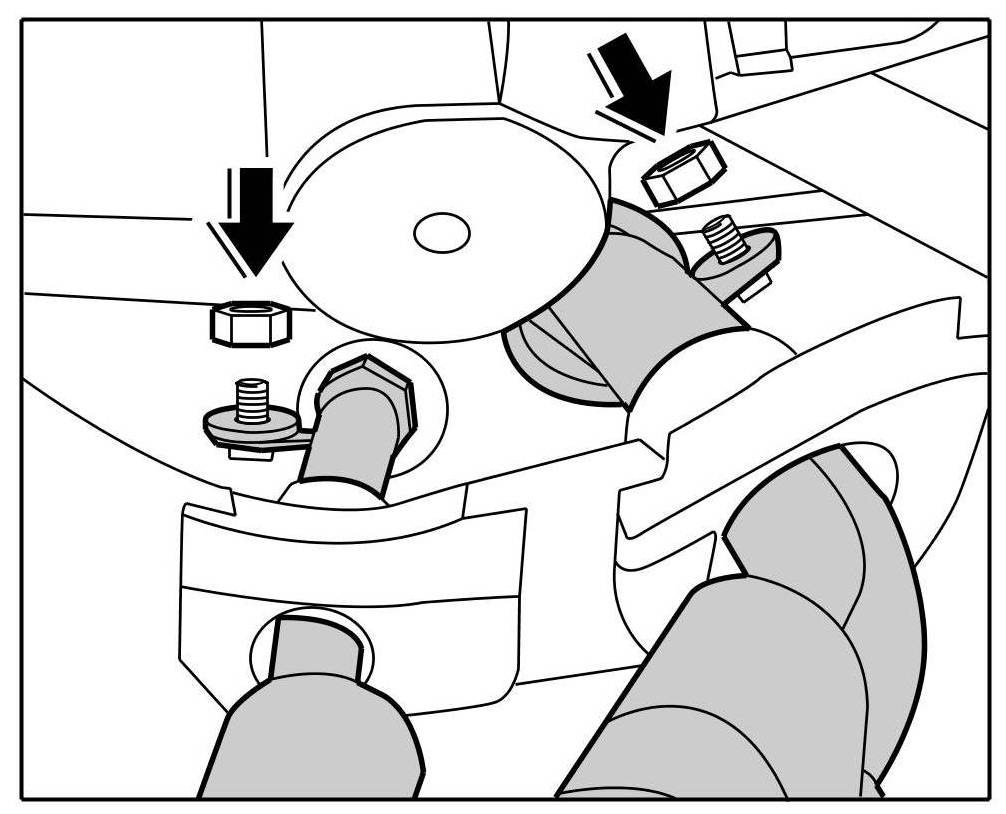 6. Place the three fastening clamps onto the threaded pins and screw down using the three fastening nuts -3-. => Tightening torque: 6 ftlb.