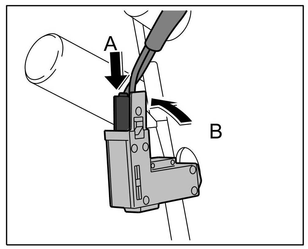 2. Push connector into contact switch -Arrow A- until it is felt to engage -Arrow B-.