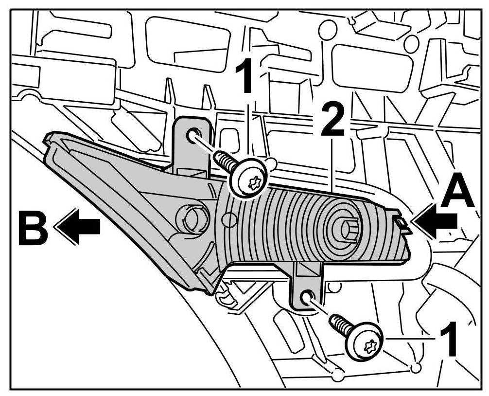 2.2. Release side direction indicator light -2- at the clip -arrow A- and remove to the rear -arrow B-.