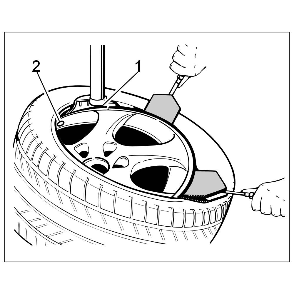 - The mounting lever must be the same distance from the inside of the tyre and the valve during the entire removal procedure.