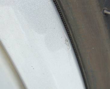 When reconditioning alloy wheels, it is only permitted to repair damage to the paintwork. For example: => Permissible damage , => Permissible damage