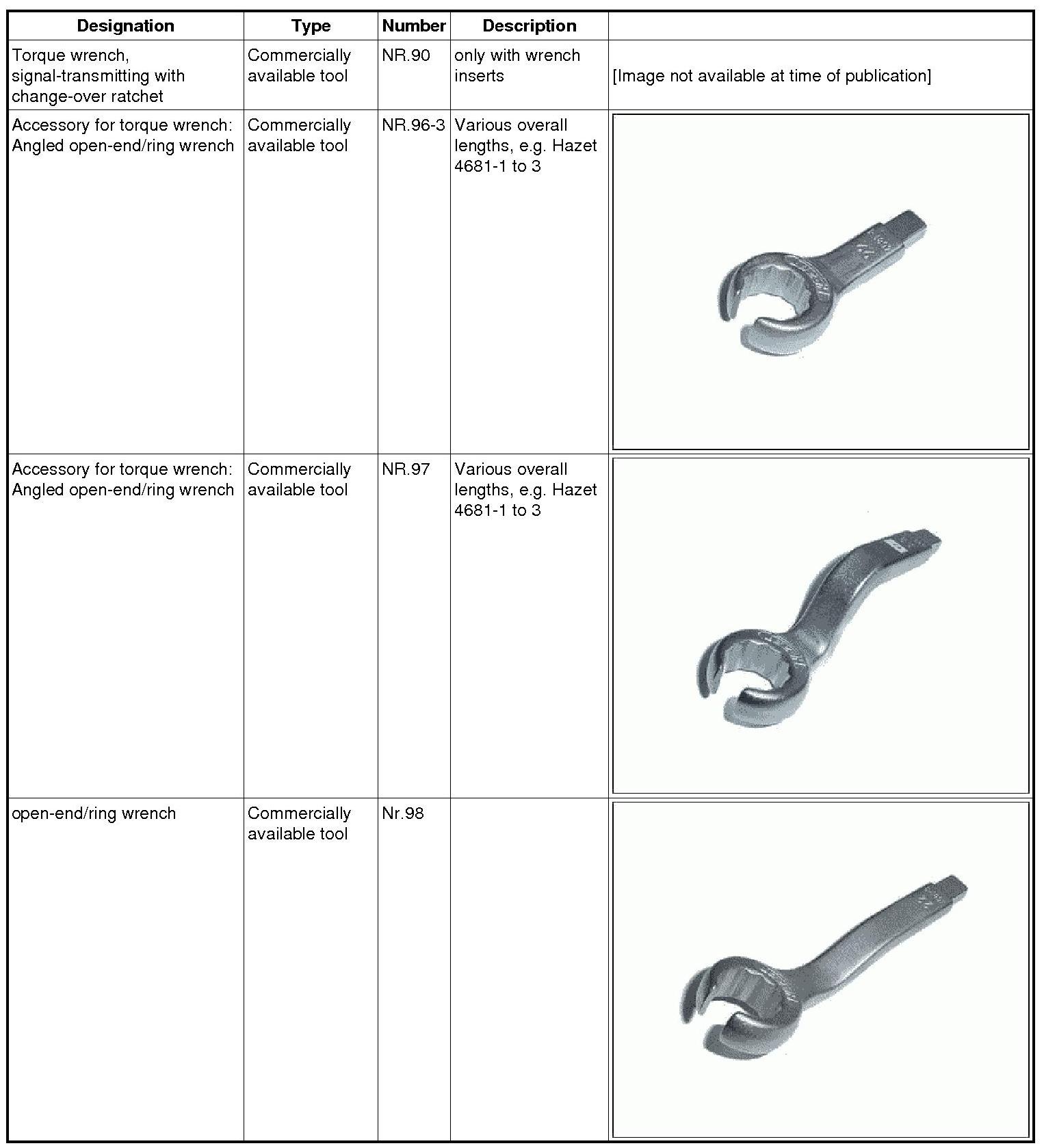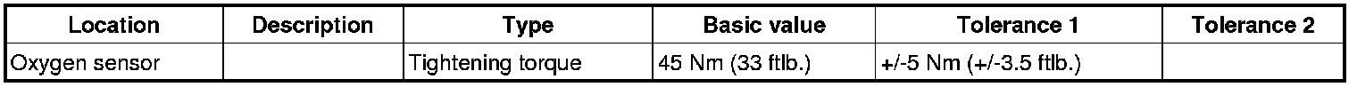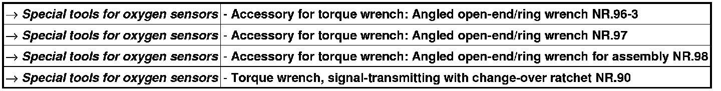 3. Tighten oxygen sensor using special tool (e.g. open-end/ring wrench Nr.98 ). => Tightening torque: 45 Nm (33 ftlb.)+/-5 Nm (+/-3.5 ftlb.)