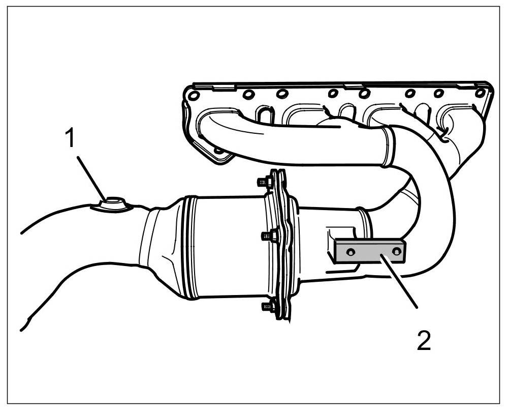 1. Carefully unscrew oxygen sensors at the primary catalytic converter. -1-