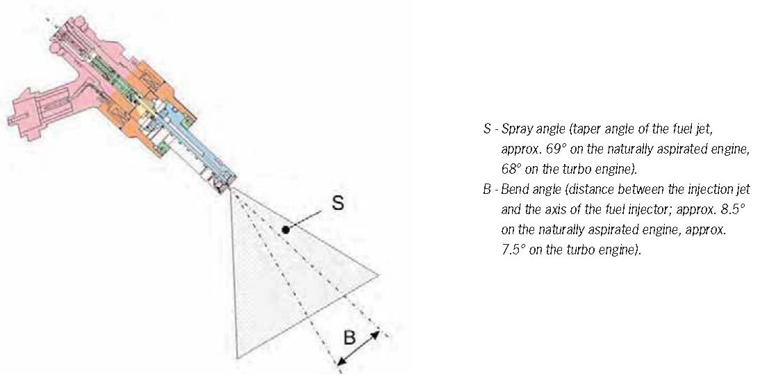 In addition to the amount of fuel injected and the injection time, the shape and alignment of the fuel jet is also important.