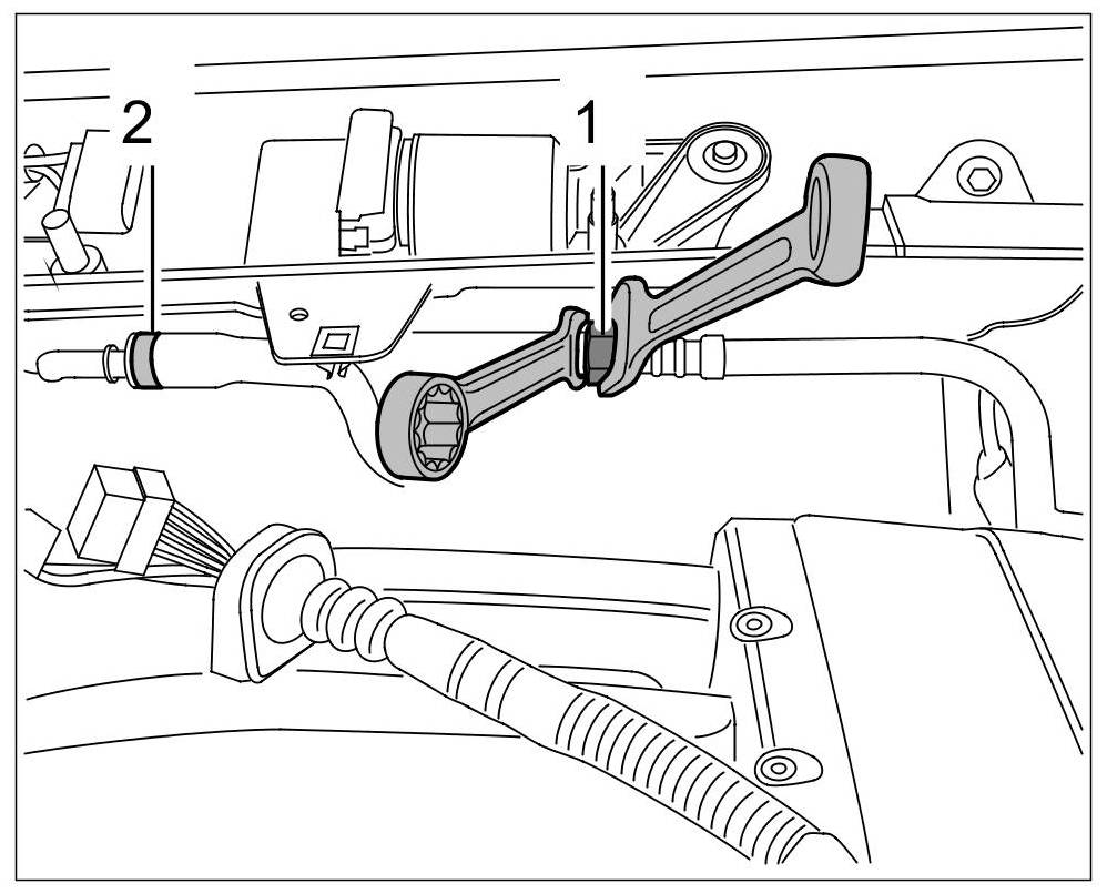 -> The high-pressure distribution pipe (rail) or other fuel feed components in the high-pressure area must always be completely removed.