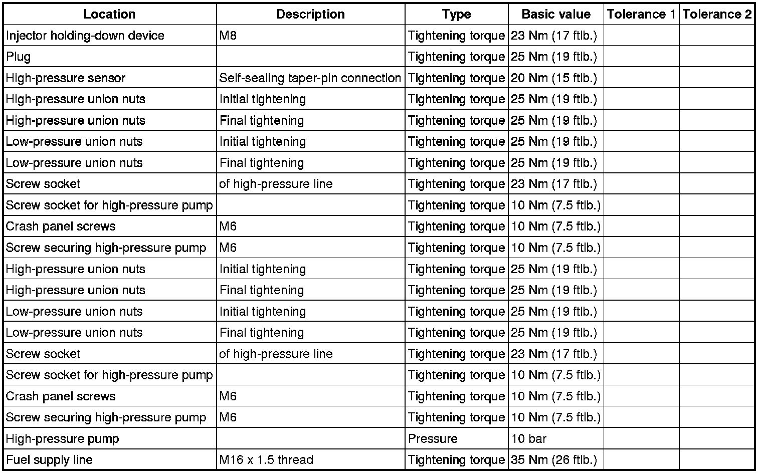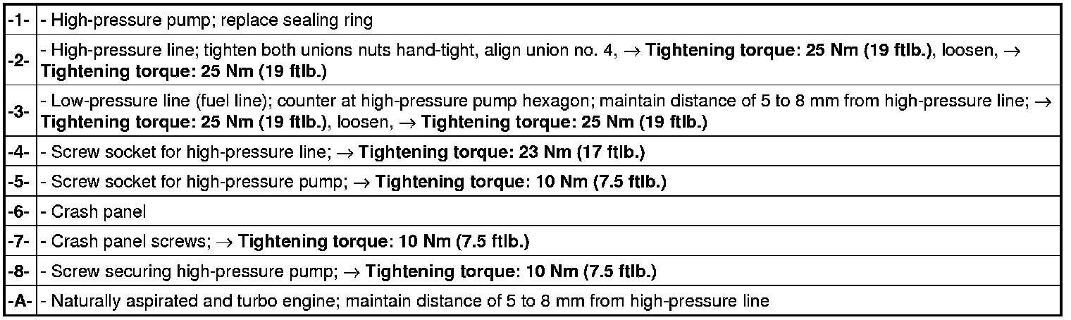 - After disassembly work on the high-pressure injection system, fit the components to the prescribed torques.