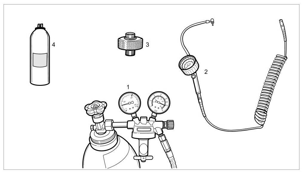 -> Only the approved test gases as the test medium guarantee comparability with fuel high-pressure systems at pressures of up to 10 bar.