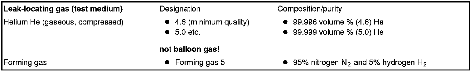 -> The leak test media, which are used for technical purposes, are supplied as compressed gas in compressed gas bottles.