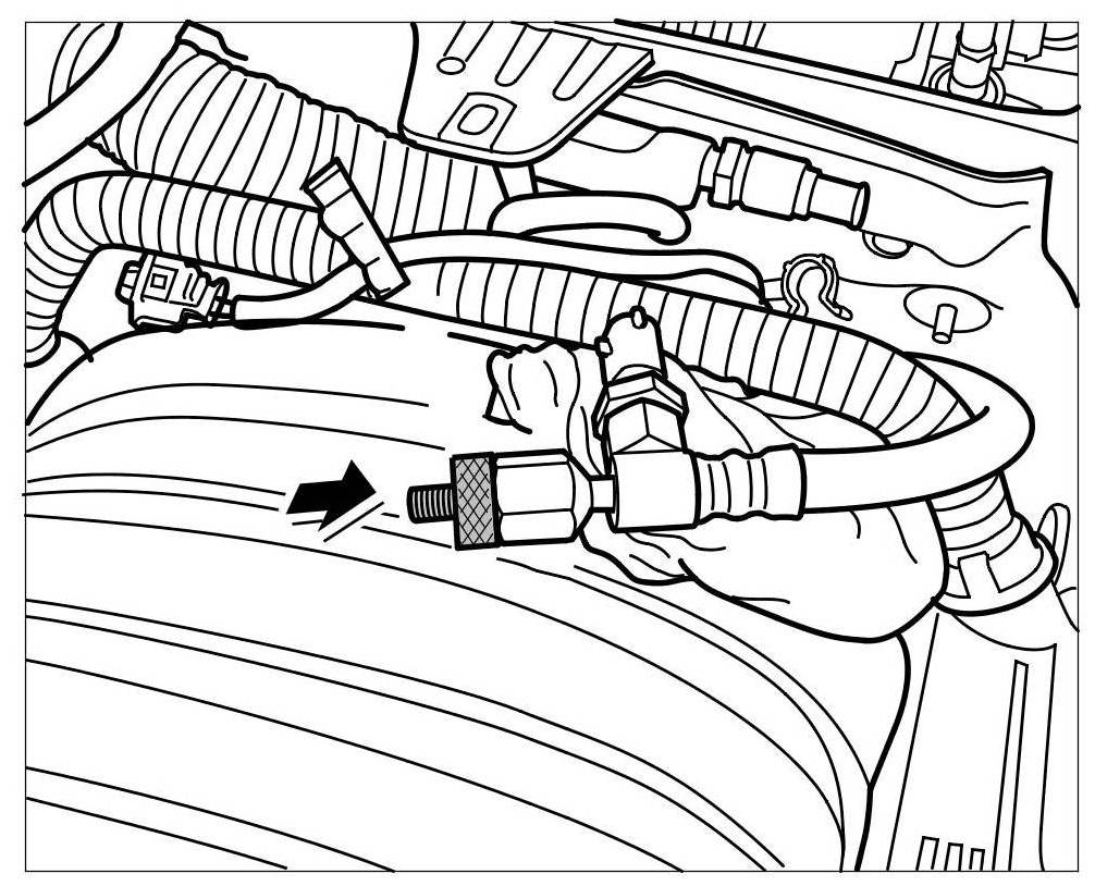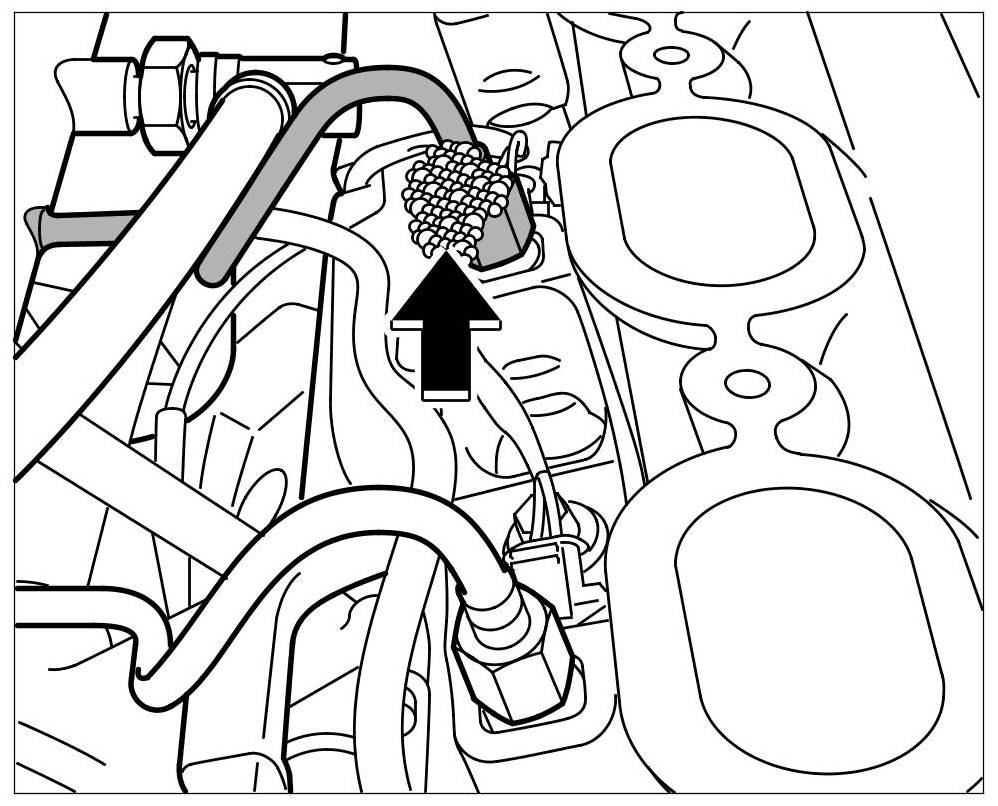 6. Before screwing the fuel distribution pipe (high-pressure rail) to the engine, quickly blow out residual fuel from the high-pressure pump and high-pressure line (intake) to the high-pressure rail.