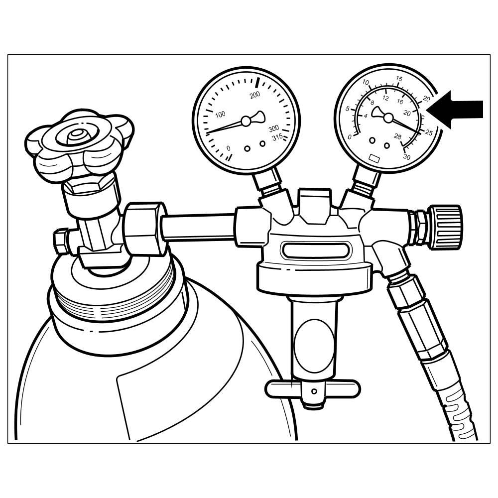 -> The test gas test pressure must be set to less than => Pressure: 10 bar on the pressure reducer on the test gas bottle.