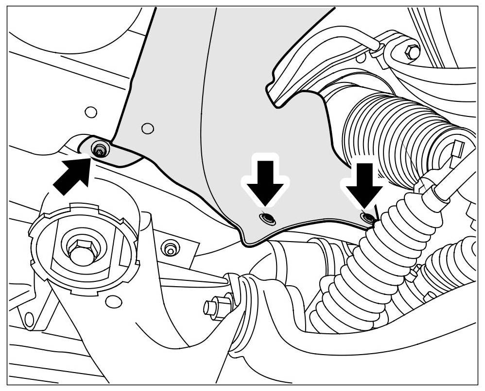 7. Remove the fastening screws of steering gear -arrows-.