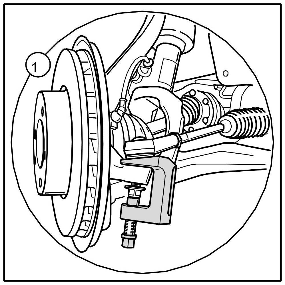 1. Remove the outer tie rod joints with the press-out tool T10187. When pressing off, screw lock nut on flush (protects the ball joint thread).