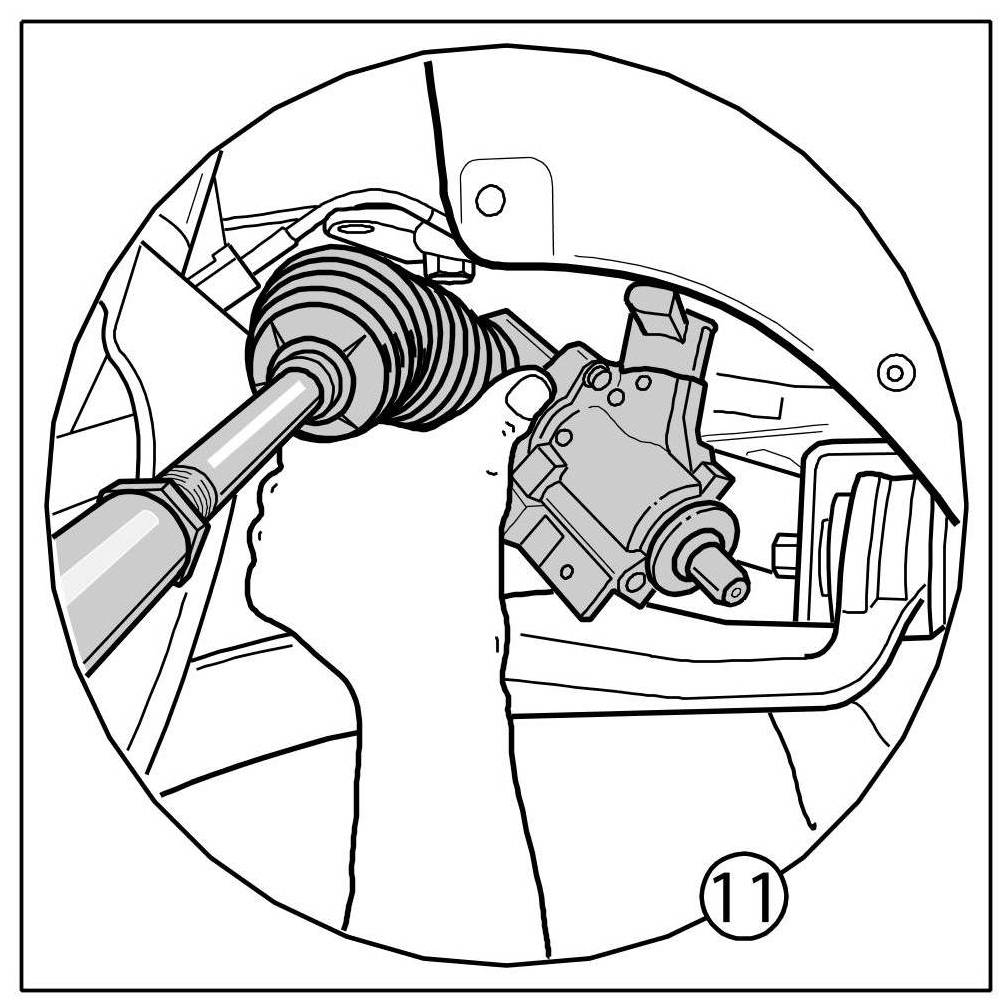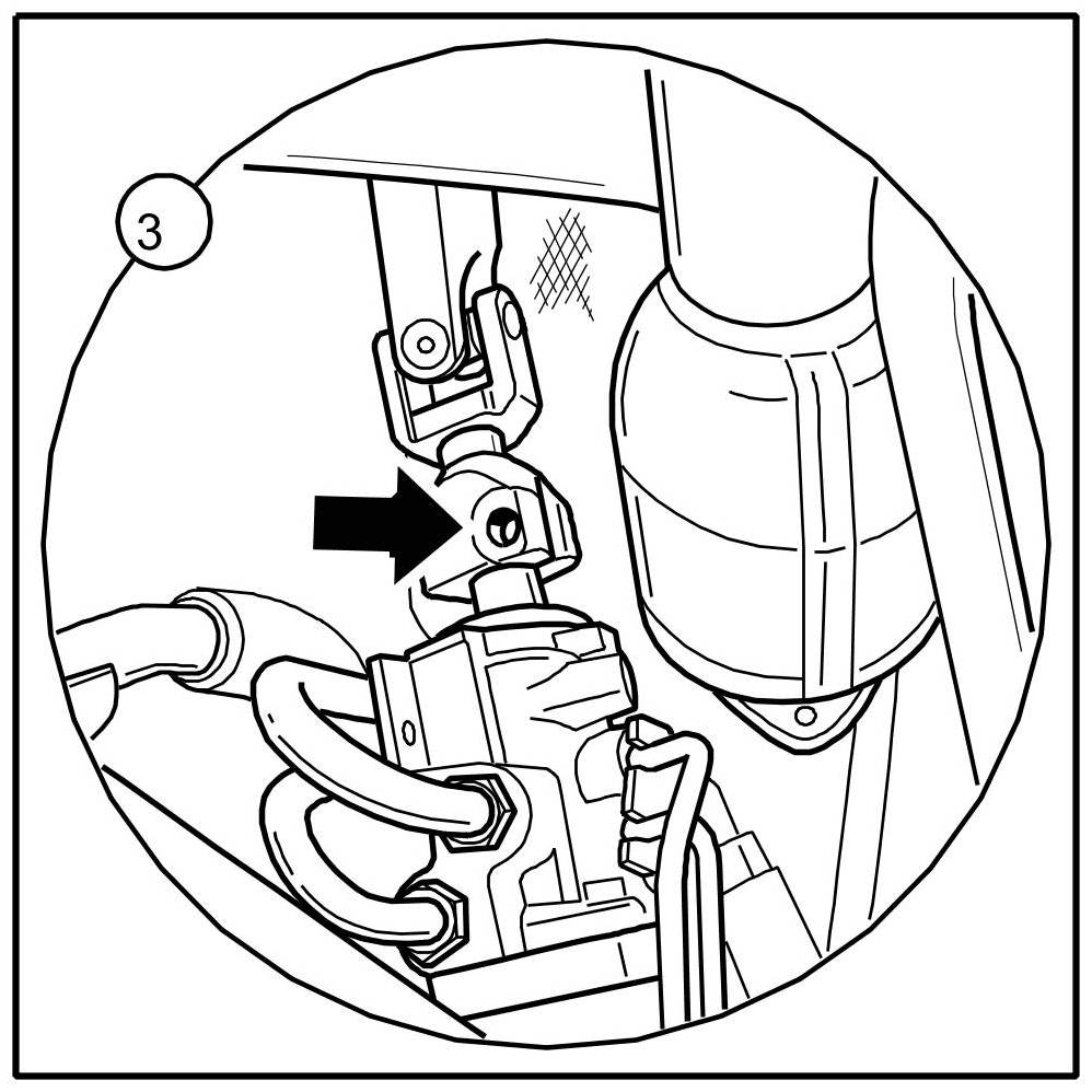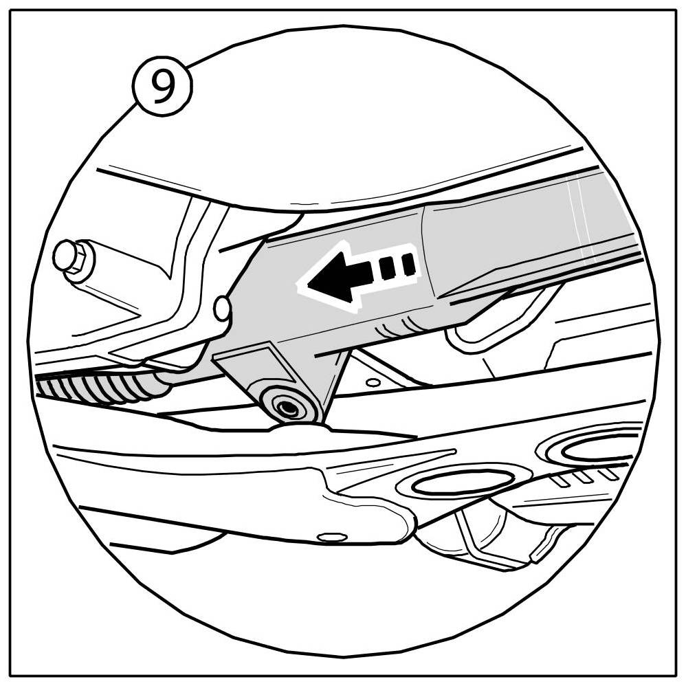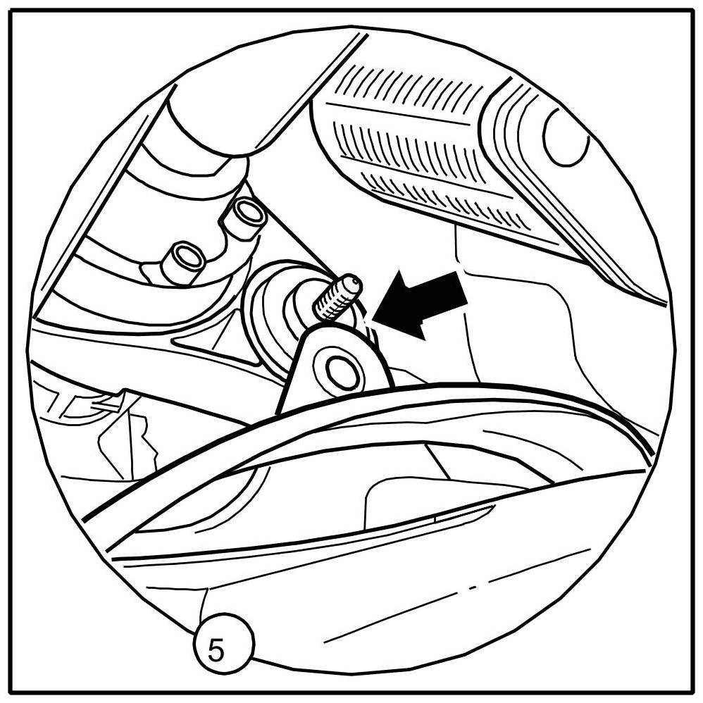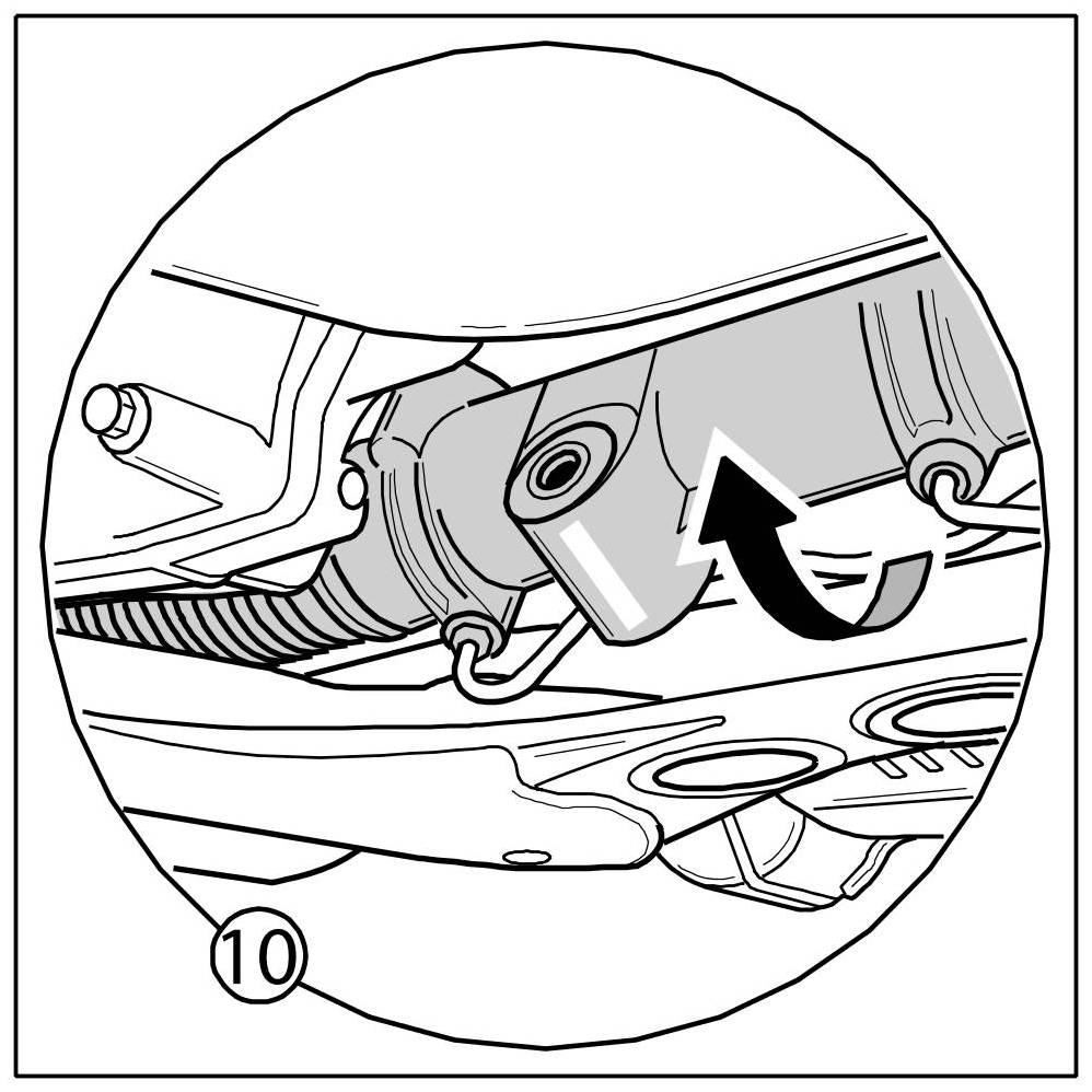 10. Turn steering gear -arrow- to the rear by approx. 90-100 °.