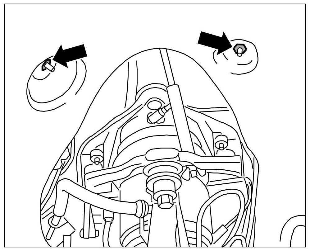 5. Mark eccentric screws -arrow- for adjusting camber and caster on subframe (facilitates fitting when reinstalling).